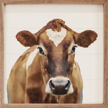 WOOD FRAMED BROWN NOSE COW SIGN