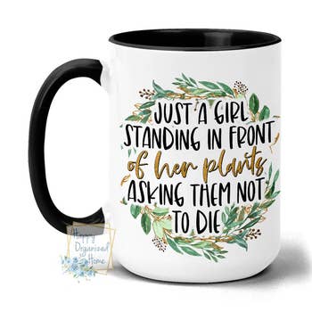 This garden themed mug is a great gift for any bookworm, plant lover, or crazy plant lady and is perfect for birthdays or holidays! -Design is Permanently Printed on both sides -11 or 15 oz Ceramic Mug -Dishwasher and Microwave safe