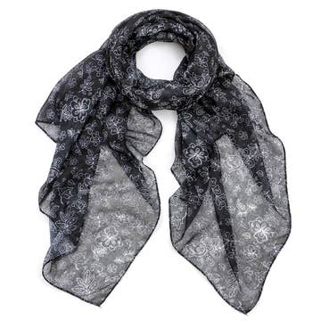 Pashmisy - Wholesale Scarf - Women's - Rust Bloom Skinny Silk Scarf In Black And Cream (11 x 85 cm)