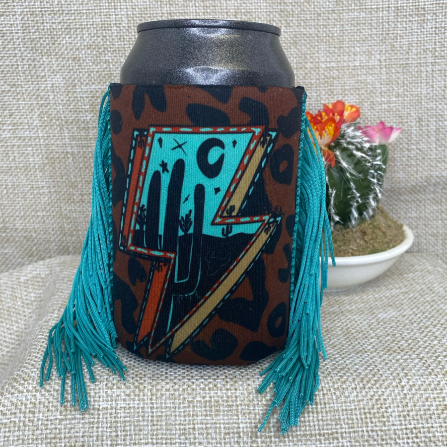 Size 12 oz Regular can fringe koozie. Images are on both sides of koozies. All of our products are handmade by us in our small shop in Texas. We try to do all our products exactly as pictured; occasionally we may need to change fringe color, but it will always complement the design of the koozie. Please note we do add our logo to all products.