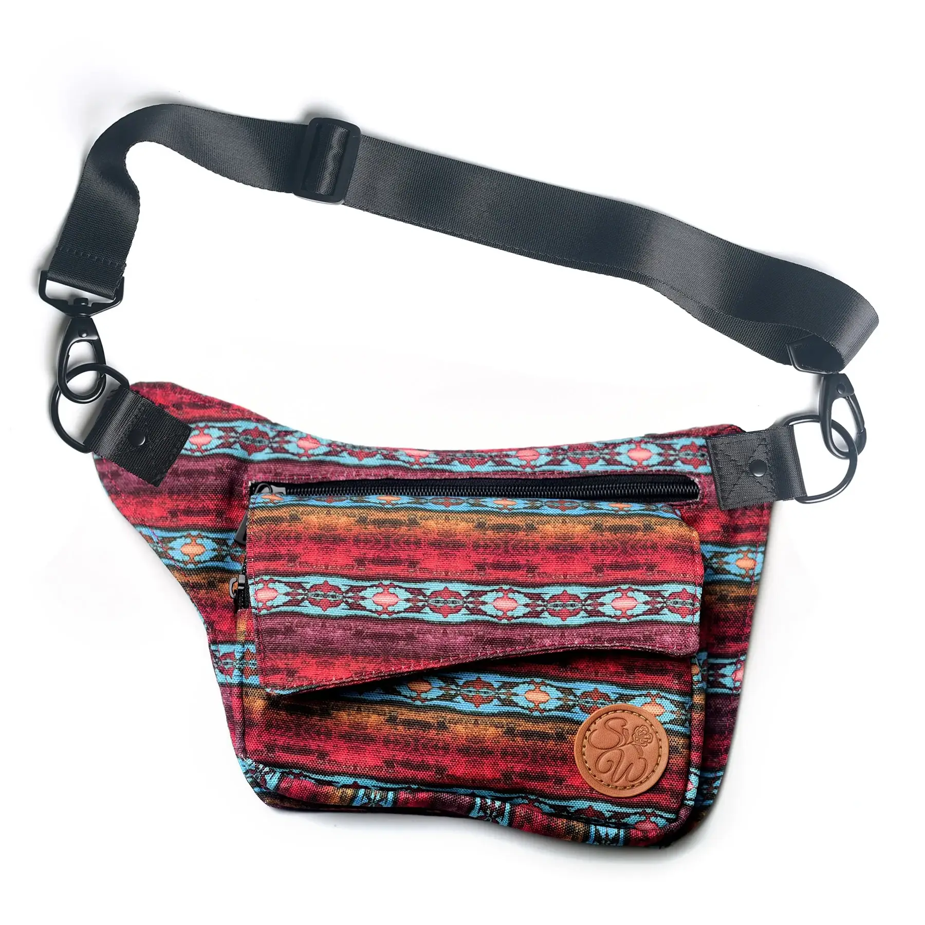 Our attractive hip hugging bag conforms to your body whether you wear it on your hip or as a chest bag. This versatile, original style keeps a slim profile and a sleek comfortable fit. Perfect for toting your essentials at music festivals, dog parks, the farmer’s market or any time you want your hands free to do stuff. *Now available in 3 strap size options! Size 2 is the most commonly ordered. Was the hip bag strap too large for you before? Choose strap 1! Like the old fit of the hip bag? Choose strap 2! Want to wear it as a crossbody or kiss your extender goodbye? Choose strap 3! Size 1 fits 28"-35" Size 2 fits 33"-46" Size 3 fits 44"-66" -Bag Measures 12" x 7.6" (30.5cm x 19.5cm) -The largest compartment measures 8" x 5.5 x 2" and the front compartment measures 8.25" x 4.75" -Made with rugged 12 ounce cotton canvas with printed nylon liner. Logo patch is black vegan leather. Gun metal hardware. -YKK zippers -Built for doin' stuff