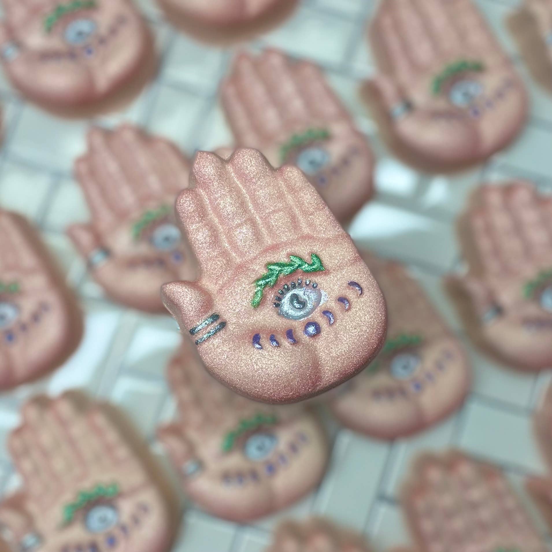 scents and colours may vary Our bath bombs are known and loved world wide. They’re very foamy, great for sensitive skin, great colour pay off, hidden colours or spilt coloured base, and well painted. Our online restocks sell out very quickly. Well loved and known shop on Instagram and our tiktok hash tag boilandbubble has over 42 million views and our boilnbubble hashtag has over 1 million views. baking soda, citric acid, Cocamidopropyl betaine, fragrance, bio- terge, water, poly 80, water soluble dye, mica may contain cocoa butter Bath Bombs may have surface cracks or imperfections due to high foam recipe and frontal embed placement. Procession time is 20 to 25 days.