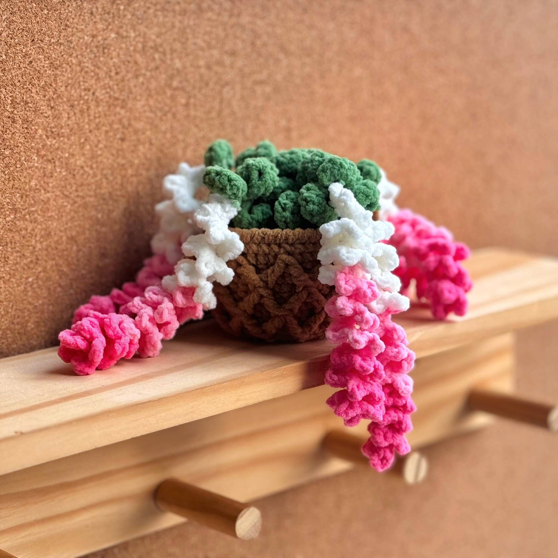 Crochet Strawberry & Daisy Flower Car Mirror Hanging Plant