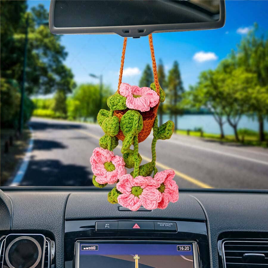 Wholesale Crochet Strawberry & Daisy Flower Car Mirror Hanging Plant