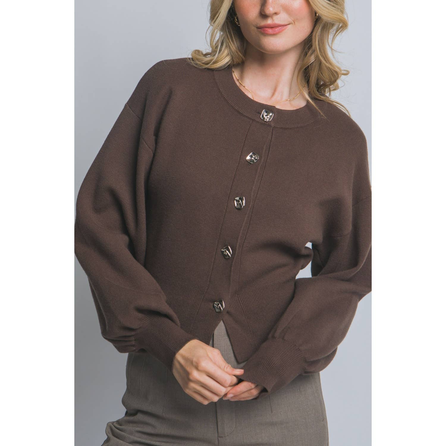 Knee Length Printed Long Sleeve Cardigan Long sleeves, Open front, Drop shoulder, Knee length, All over printed Lightweight DTY Brushed 95% Polyester 5% Spandex Model is wearing size M