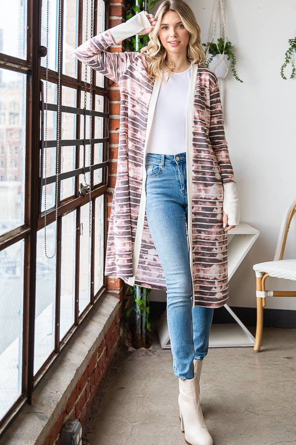 Knee Length Printed Long Sleeve Cardigan
