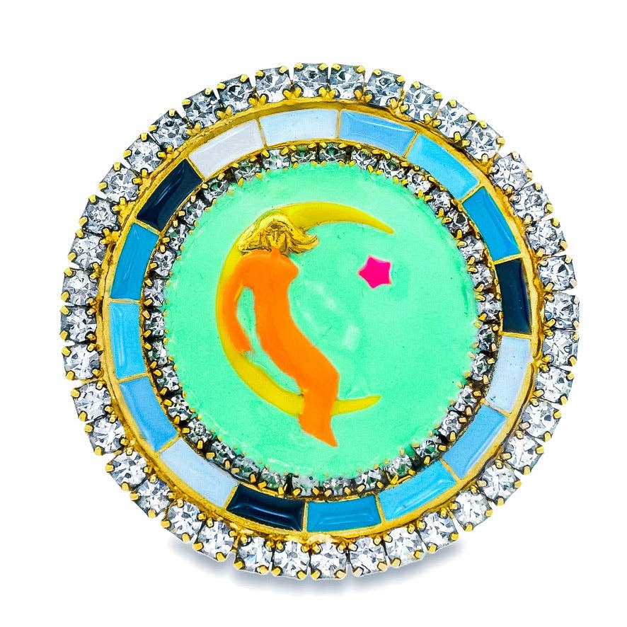 The Divine Iguana - Wholesale Brooch - Loteria La Luna Crescent Moon Glass Cabochon Brooch5