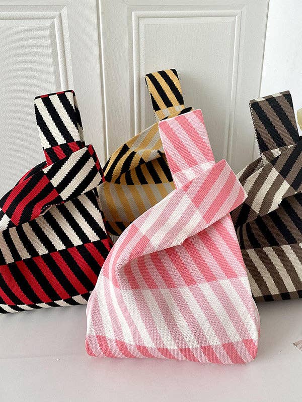 Material:Polyester,Knitting Feature:Striped Occasion:Going out,Casual,Leisure Fashion Type:Bags Accessories,Woven Handbag