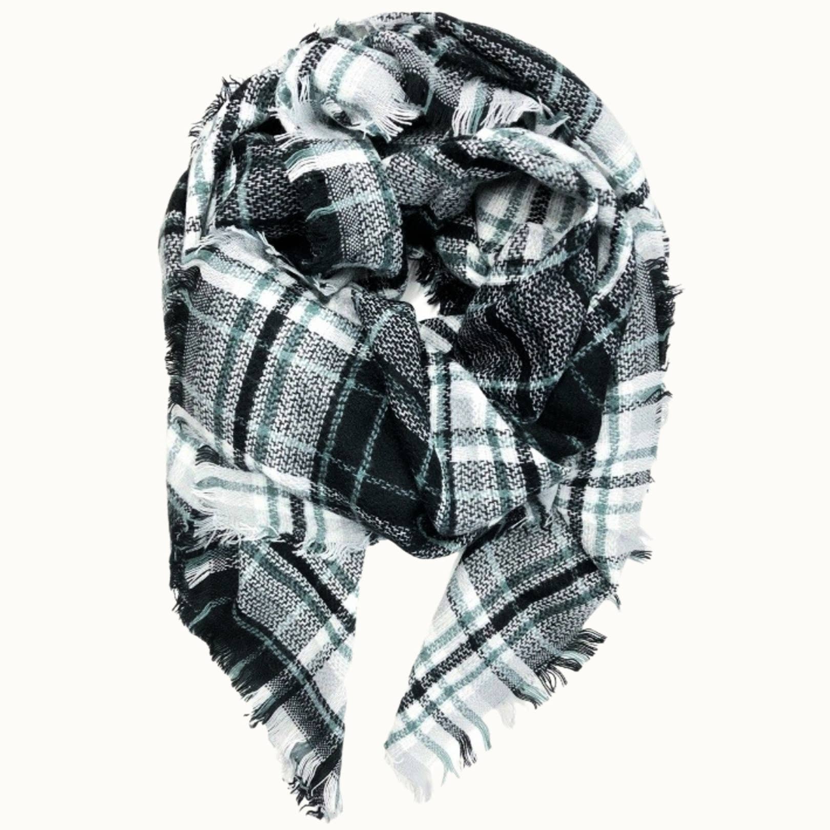 B6C. Large plaid square blanket scarf. Size - Length: 52" - Width: 52"