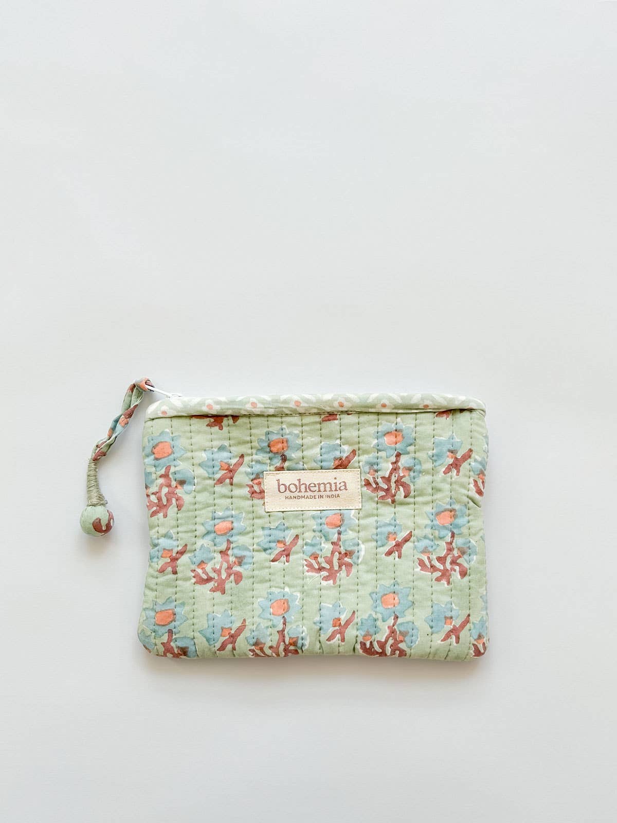A charming hand block print inspired by cottage gardens and their blooming borders, the quilted cotton Daisy Zip Pouch features a striking combination of daisy flowers and graphic check in pink, ochre and deep red. This pouch bag is fully lined in a complimentary linear check print with a matching bow on the zip pull. The medium quilted zip pouch is the ultimate travel accessory - perfectly sized to fit most phones, a passport, small notebook, and keys. A bestseller among our stockists worldwide, these quilted pouches are as functional as they are charming. Their vibrant designs and tactile finish make them a standout in gifting displays and a dream to merchandise. Whether you’re curating a summer edit or looking for thoughtful gifts, these pouches are ideal for birthdays, Christmas, Mother’s Day, graduations, or as stylish stocking fillers. Ethically Handmade in India 100% Cotton Block Print Size | 18cm x 14cm Cool Handwash Zero Waste All sizes are approximate*