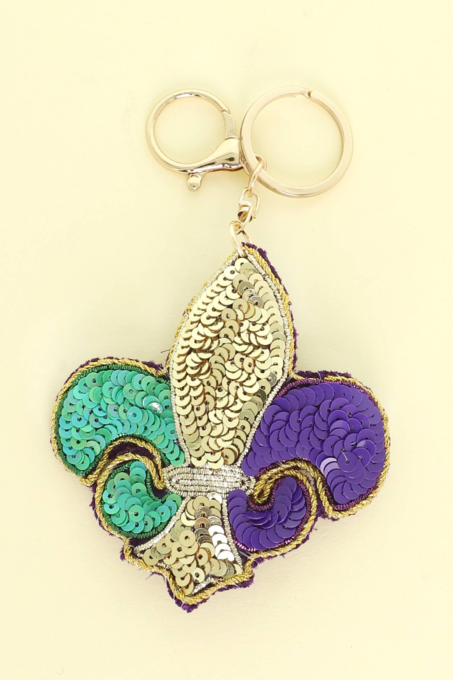 A single, 2.25 inch tall Fleur Des Lis key chain bottle opener. Antique Bronze finish with texture inside.