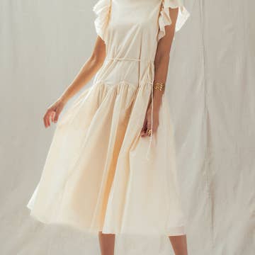 AD1867 - TIE SHOULDER ORGANZA MIDI DRESS