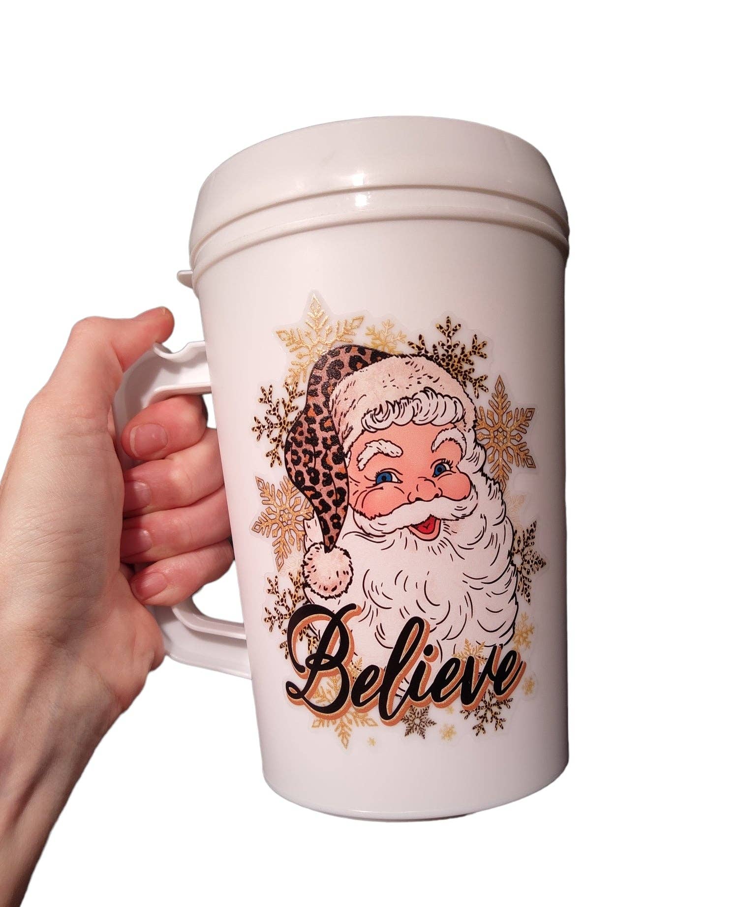 DESCRIPTION: BPA FREE SIZE: 7 inches tall. Bottom diameter 4 inches. Top diameter 5 inches. Lids are laser engraved with our Motto "Happiness Is Only A Sip Away" 34oz Insulated Trucker MEGA Mug with UV Transfer Graphic. Each MUG includes FREE Lid and Bendy Straw. All Mugs come packaged in Bubble Wrap for Safe Shipping