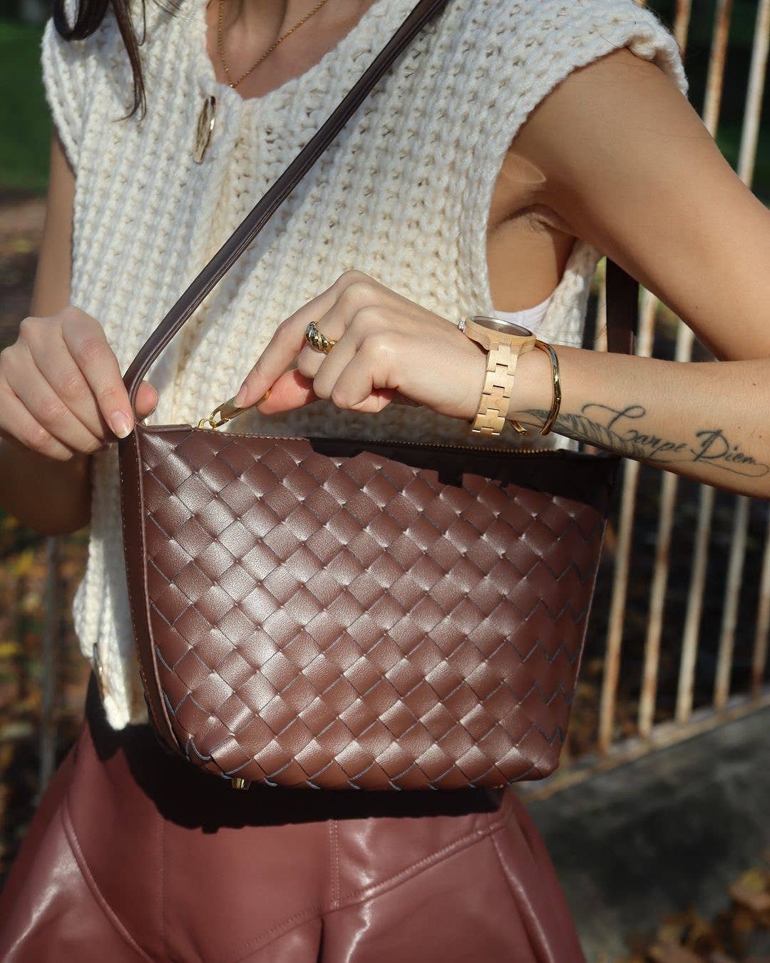 Big Size Vegan Leather Woven Tote Shoulder Bag