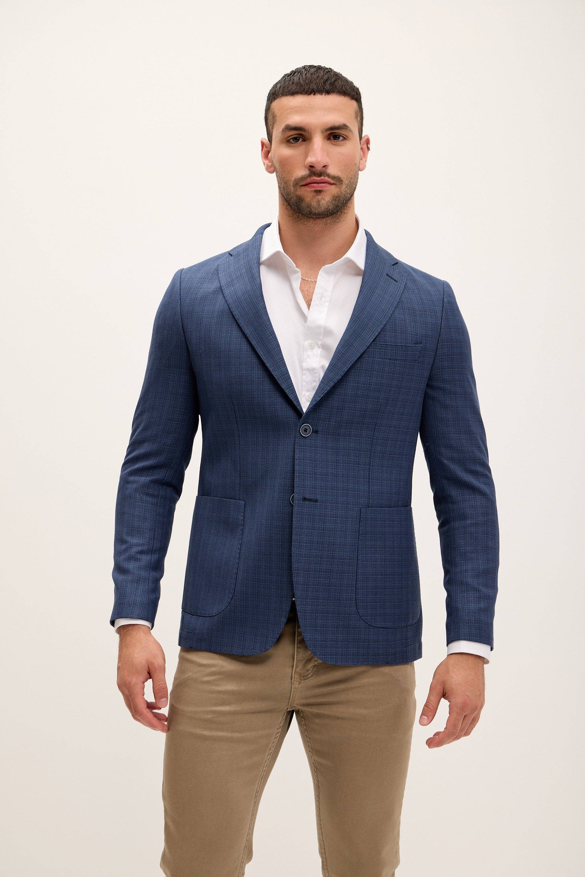 From boardroom to BBQ without missing a beat. The Madison blazer looks like a classic slim-fit sport coat in subtle solids—until it opens. That’s when the bold, fully-lined American flag interior hits like the chorus of “Free Bird.” Made from durable 100% polyester and tailored with a 2-button closure, notched lapel, back double vent, and finished sleeves, this is the suit jacket that surprises and sells. Sizes 36R–60R. Perfect for customers who want to look tame until they raise both arms and pledge allegiance to the party. • Subtle blazer with bold American flag lining surprise inside • Slim-fit cut, size up if between sizes (36R–60R available) • 100% polyester shell and lining — structured and sleek • 2-button closure, notched lapel, double vent, finished sleeves • Interior: 1 buttoned pocket + 3 internal jetted pockets • Fully lined and dry clean only — hang it, sell it, reorder it • Proven conversation starter + high sell-through style