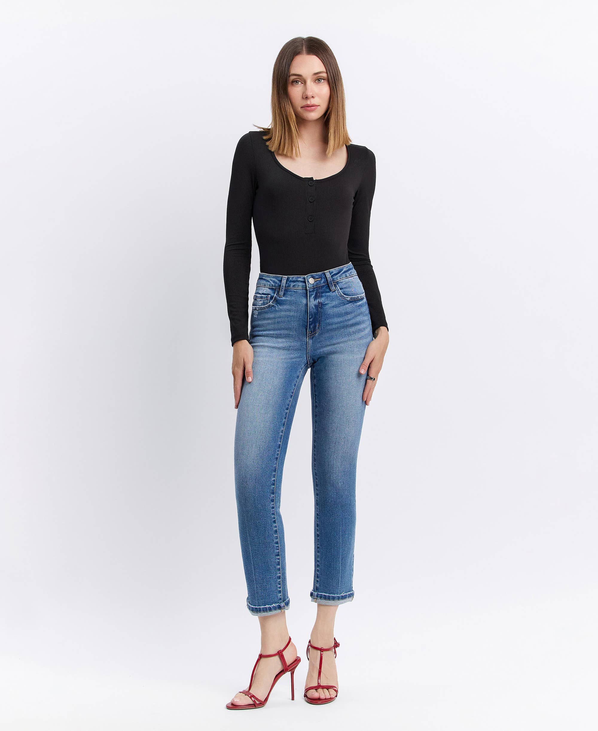 Insane Gene USA - Wholesale Jeans - Women's - High Rise Ripped Frayed Hem Straight Jeans5