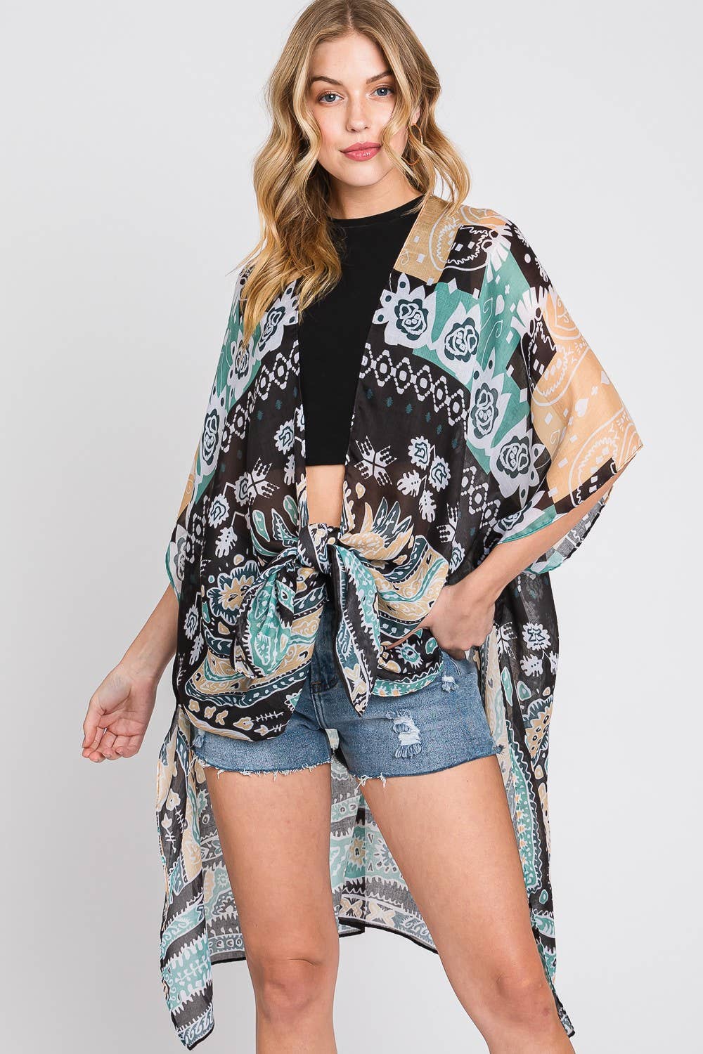 Multi Bandana Print Open Front Kimono