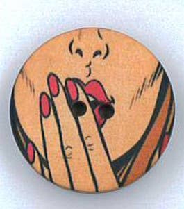 Pack of comic printed buttons. 4 different models. 12 units per model. 2-hole button Button in matte finish. Composition: polyester Button measurements: 28L... 18mm diameter 36L... 23mm diameter 44L... 28mm diameter 54L... 34mm diameter Supplied in bags. Quantity per bag: 48 pieces (12 units per model)