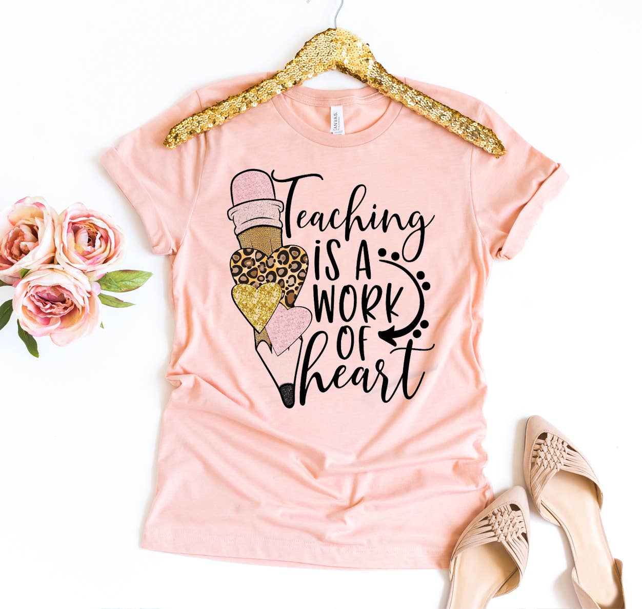 Wear your passion with our Teaching as a Work of Heart Pink Callie Tee. Ideal for teachers, educators, and homeschoolers, this 100% cotton graphic top is a cozy statement that celebrates the heart and soul educators put into their work. A thoughtful gift for Valentine's Day, Teacher Appreciation Day, or just to show thanks for the impact they make. This Callie Danielle custom tee features a wide neckline with thick detailing, a long body, and super soft 100% organic cotton material. • Material: 100% Cotton; Pre-shrunk • Color: Pink • Fit: Unisex • Design: Teaching is a Work of Heart • Care Instructions: Machine wash cold inside out, gentle cycle with like colors. Hang to dry.