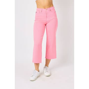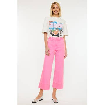 Description * Style#: PW505-Pink * Mid Rise, Side, and Back Pockets, Straight Flare Wide Leg Finish * Rise: 11.5" * Inseam: 33.5"