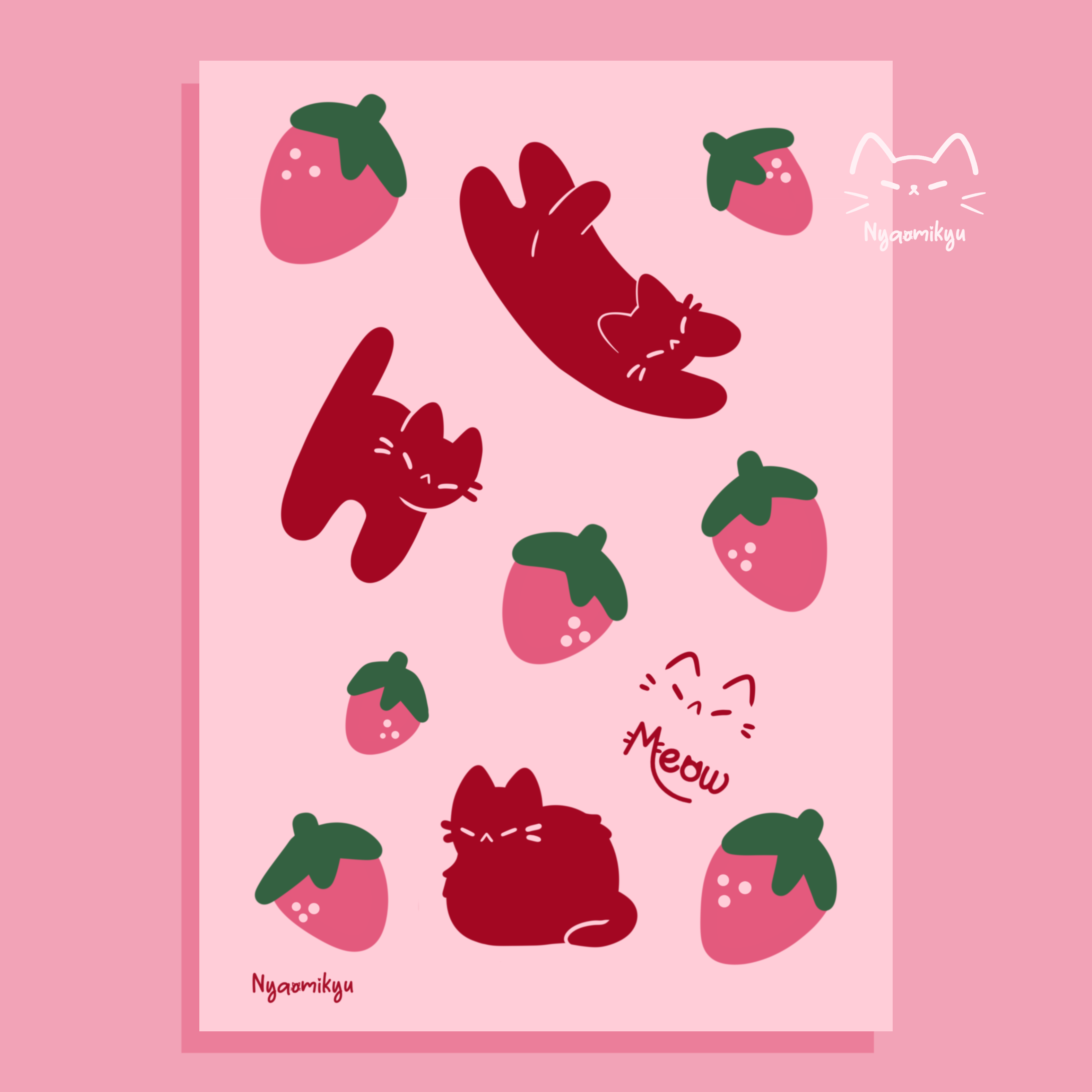 Nyaomikyu - Wholesale Sticker - Strawberry Milk Cat Sticker1