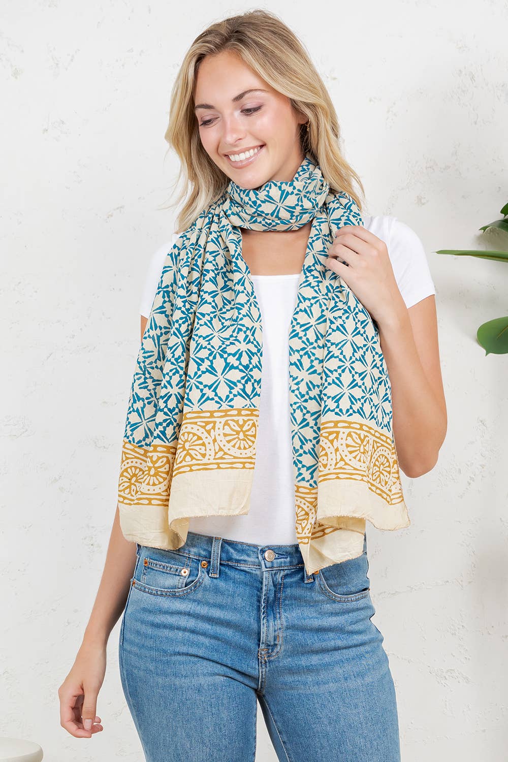 100% cotton scarves printed by hand in Rajasthan, India by traditional craftsmen using hand-carved teak blocks. Printedon pre-shrunk, lightweight and ultra-soft cotton, our scarves feature the traditional art of hand block printing made India. They are made using organic, eco-friendly colors, pigments, and dyes. A variety of blocks for different colors are used. The outcome is a beautiful product made by artisans of India.
