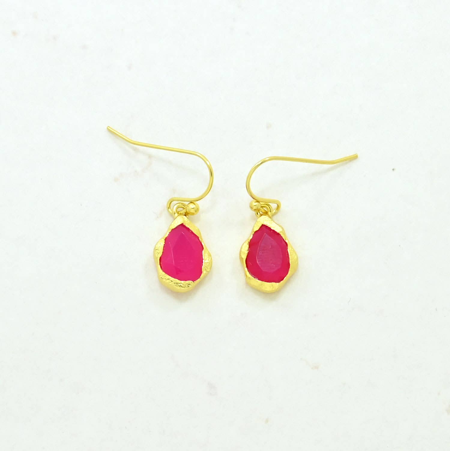 Kate Earring Gold - Pink Fuchisa Onyx & Orange Carnelian