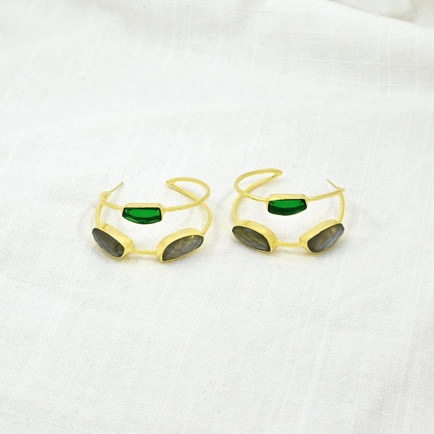 Ariana Earring Gold - Blue Iolite, Jade, Moonstone & Pearl