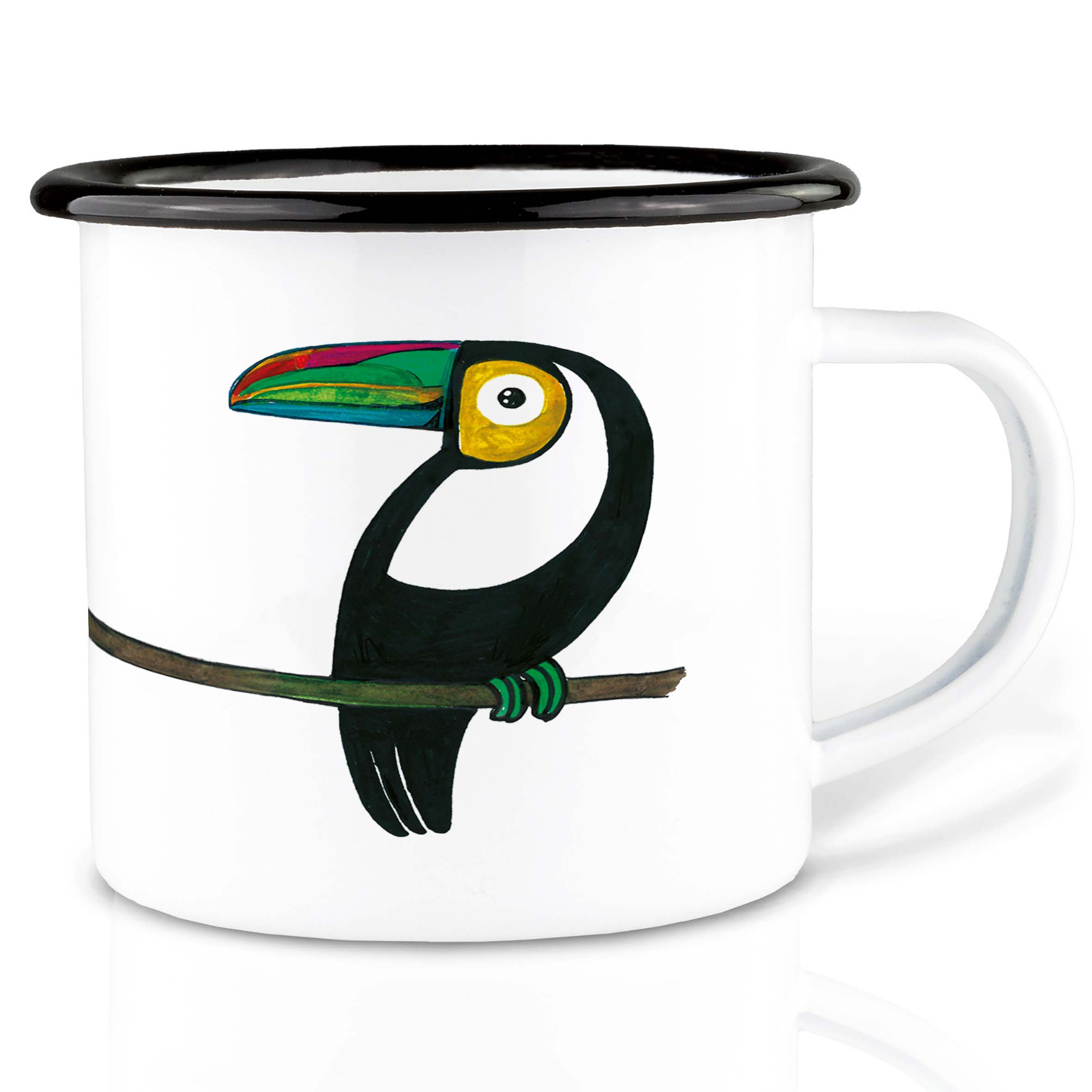 Enamel Mug with Sleeping Fox – Your New Eye-Catcher at the Kitchen Table Product Information: • High-quality white metal mug with black rim • 300 ml or 500 ml capacity • Lightweight, sturdy & weatherproof – also ideal as a camping mug on the go • Hand-printed for you in our workshop in Germany • Plastic-free packaging Our cute fox mug is the ideal gift for your best friend, your mom, your colleague – or just for yourself. Whether for the office, at home, or on the go while camping and hiking: The unique designs by our artist Hanna Ligeti make this enamel mug your new favorite. Note: Enamel mugs are unique due to production with small irregularities. Uneven enameling or small black dots are not defects but can be part of this product. Care Instructions: We recommend good old hand washing.