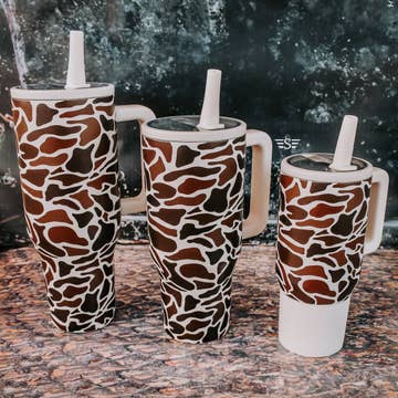 Duck camo never goes out of style and this cup is sure to be a favorite. This design is super sleek on our insulated cups! You won't see these cups leaking, these seal up when tightened and are perfect for those on the go! Swap the lid direction for a left or right handed cup! Flip. Sip. Go. Our new flip lids make your tumbler even more functional — no spills, no hassle, just easy sipping wherever the day takes you. Stainless steel Hard Plastic Straw Rated 6hrs warm and 12hrs cold Sleek design allows for easy cupholder fit Make sure you grab the coordinating pieces! Blank Duck Camo Trucker Cap Mama Duck Camo Trucker Cap **Do not wash in dishwasher Order today! Please do not use images without permission, all designs are copyright of Flying S Company.