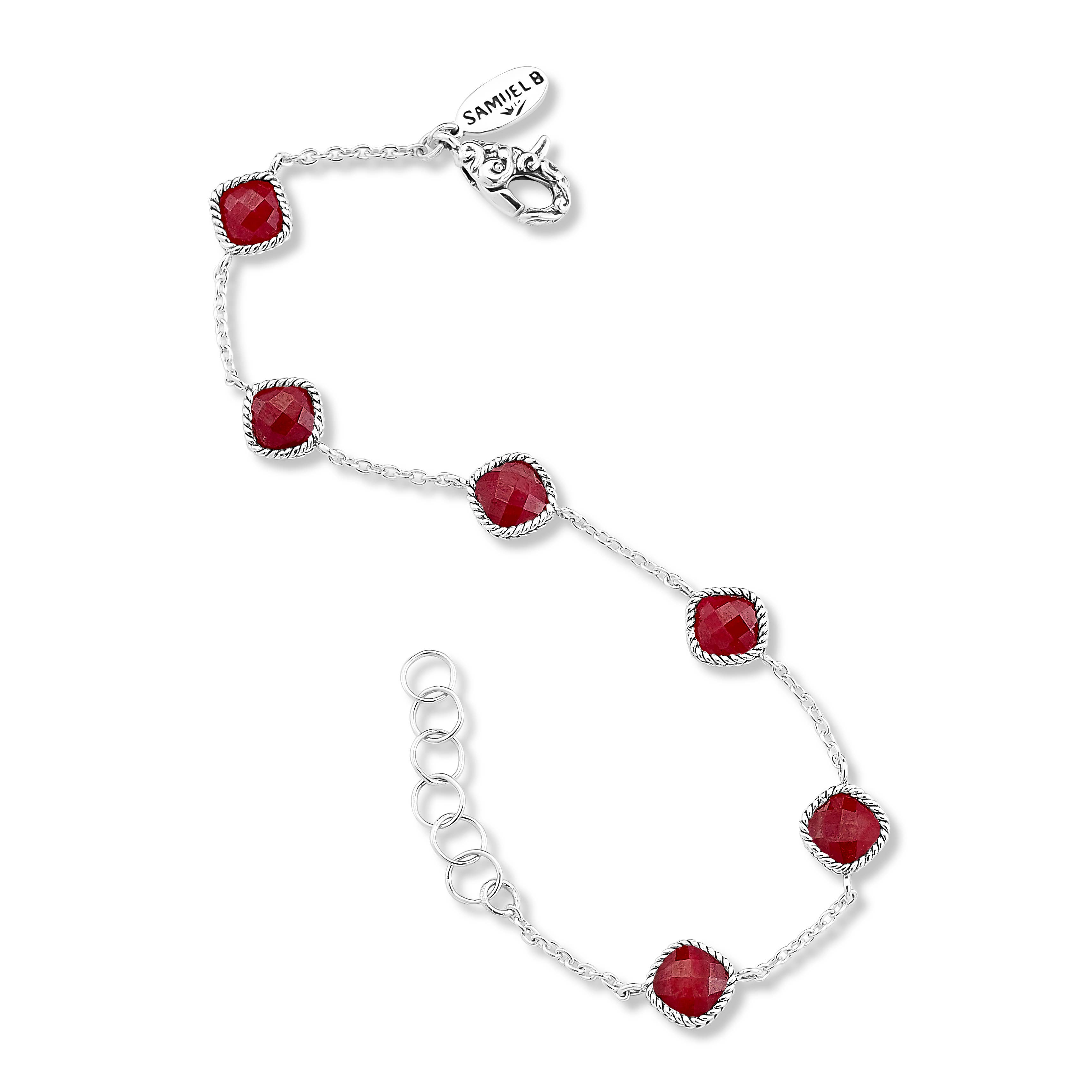 Garnet Sterling Silver Link Bracelet