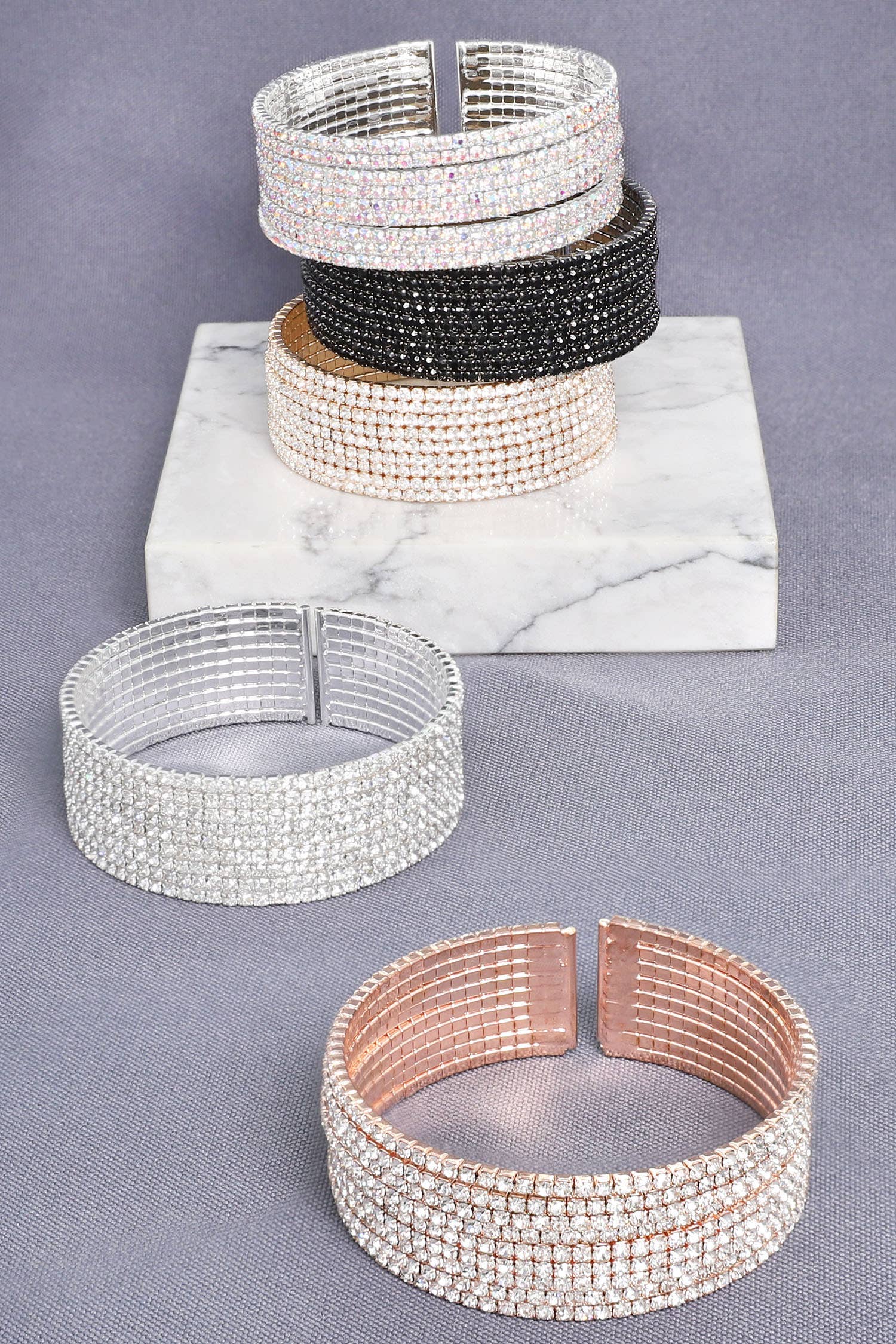 Wholesale Stone Pearl Paved Evening Hinged Bracelet