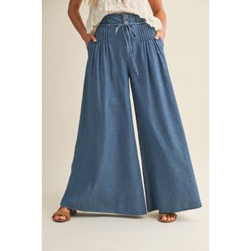 SKU: VP83039-Washed Denim-S, VP83039-Washed Denim-M, VP83039-Washed Denim-L Made in China Aesthetic: Casual and Preppy Care Instructions: Hand wash Denim Wash: Medium Wash Embellishment: Fringe and Ruffles Fabric: 100% Tencel Fit: Contemporary and Missy Occasion Theme: Everyday and Holi Occasion: Everyday and Work Pant Length: Ankle Pant Style: Flare and Relaxed Pattern: Solid Rise Style: High Season: Core Weight: 453.59 g (1 lb)