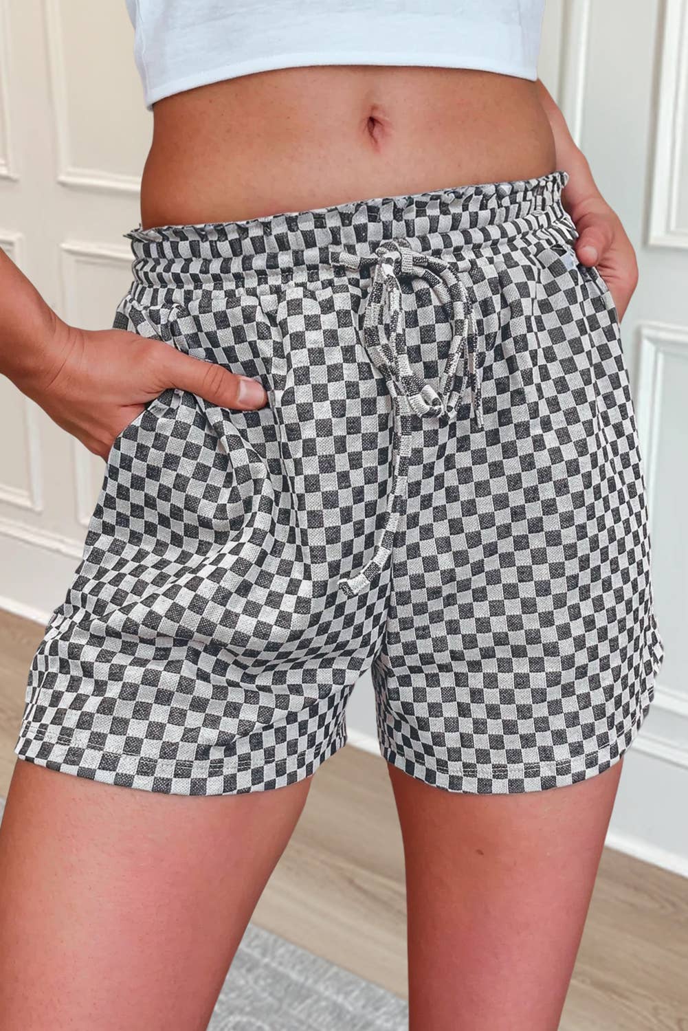 SKU: LD731625-P620-S Made in China Aesthetic: Casual Fit: Missy Occasion Theme: Everyday Occasion: Everyday Pattern: Checkered Rise Style: High Season: Spring/Summer Shorts Length: Short Weight: 260 g (9.17 oz)