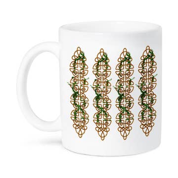 Bring a touch of playful sophistication to your table with this Mahjong–inspired ceramic mug. Scattered iconic tiles of dragons, jokers, and flowers make this perfect for coffee, tea and hot chocolate. Our 15 oz. premium ceramic mug also features a large comfortable handle for easy gripping. It'll quickly become a favorite! Dishwasher and microwave safe Printed in the USA