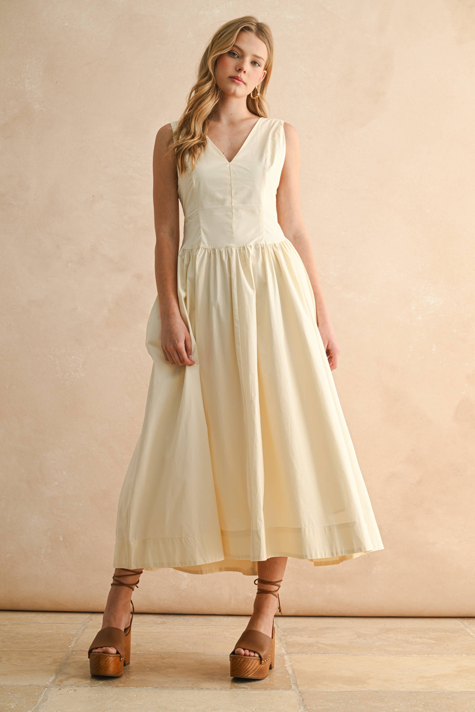 WHOLESALE COTTON BLEND CONTRAST TRIM MAXI DRESS
