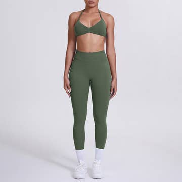 Top: Daphne Molded Cup Halter Neck Backless Sports Bra Bottom: Athena Pro Lycra® ONE SIZE Sculpting Flare Yoga Pants --------------------------------------------------------------------------------------------- Experience the perfect blend of style and performance with the Daphne Lycra® Halter Neck Sports Bra and Flare Pants Set. Crafted from premium Lycra® fabric, this set is designed to offer exceptional stretch and support, making it ideal for high-intensity workouts or a serene yoga session. The halter neck sports bra provides a sleek and secure fit, while the high-waisted leggings contour your shape with a flattering silhouette. Enjoy unmatched comfort and freedom of movement with this versatile activewear set that transitions seamlessly from the gym to casual wear.