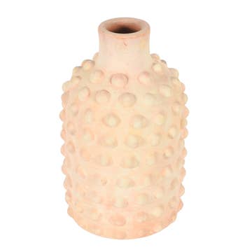 hand painted bisque ware - unfinished ceramic hand made in a ceramics factory in China and painted in our studio in Brooklyn colors are pink, dusty orange and periwinkle size is 4" x 3" - does not hold water - meant to hold FOREVER FLOWERS , dry leaves, flowers, hopes and dreams