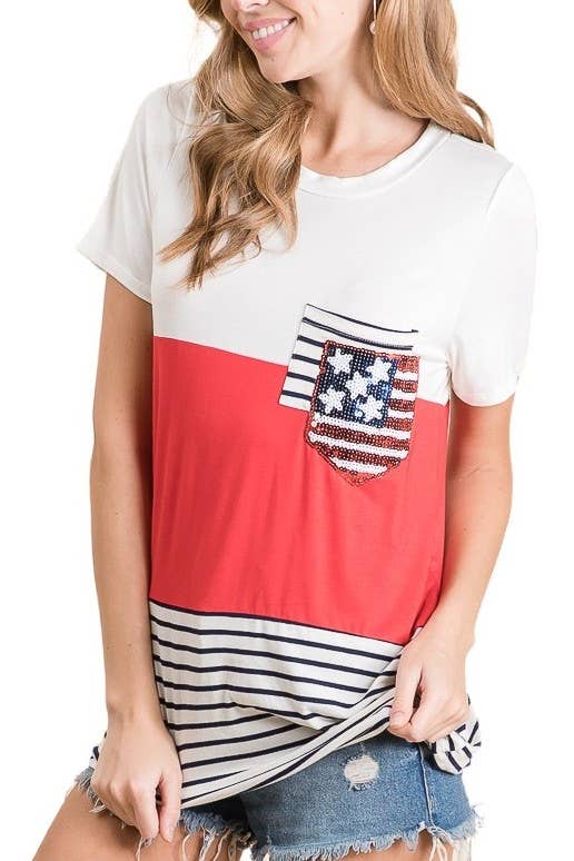 WOMEN'S 4 OF JULY SHORT SLEEVE TOP -CT43252F