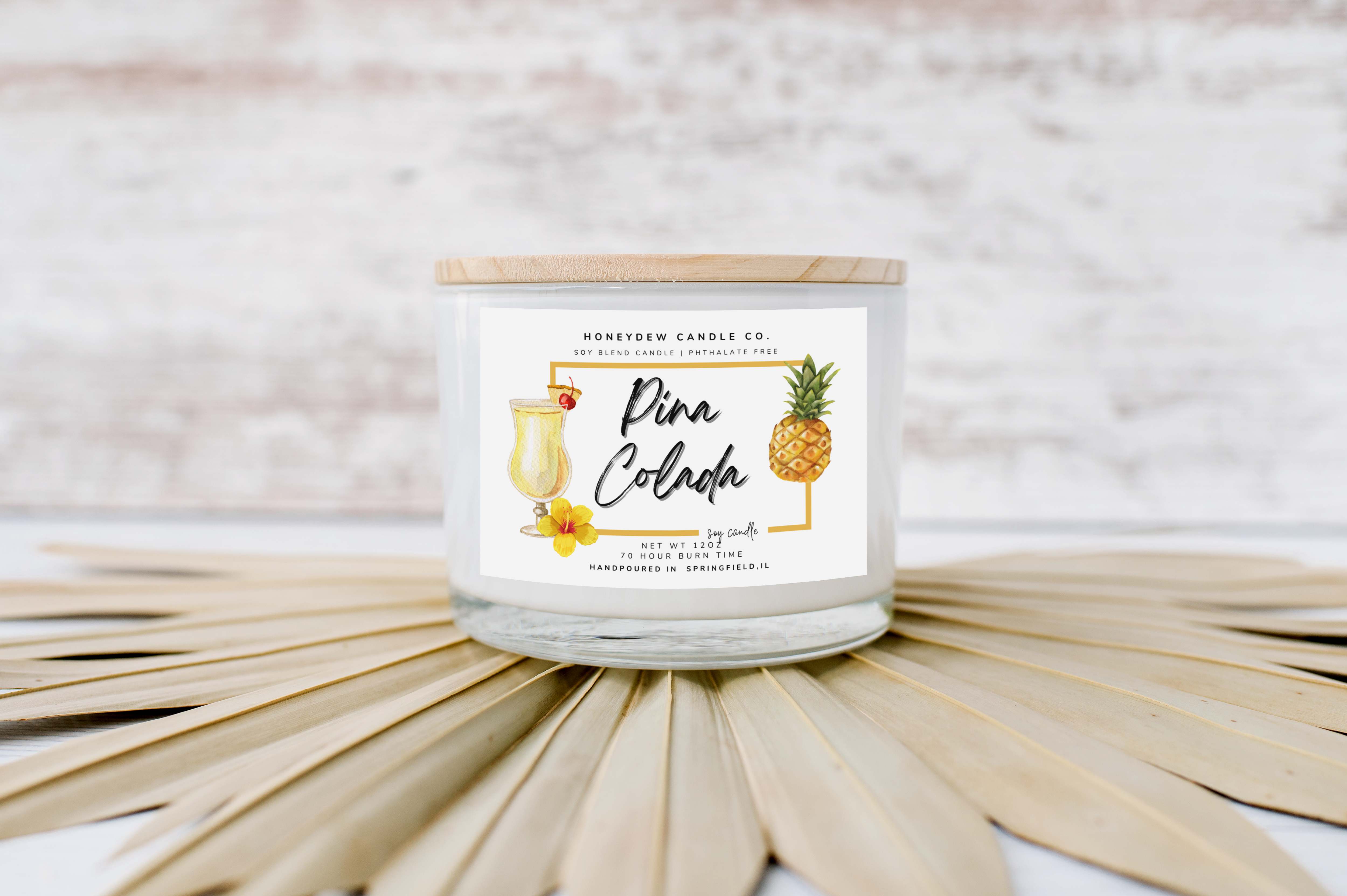 A tropical blend of fresh pineapples and coconut milk with a hint of Rum. * 12 OZ * Burn time: 50-60hrs * Ideal for medium-large rooms * 2 wick candle (THIS TREAT IS NOT MADE TO EAT ) Keep the wick trimmed to 1/4 inch at all times. Do not burn candle longer than 4hrs.