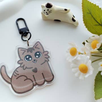 Keep those cute and spooky Halloween vibes year round with this fun three-charm keychain — which features a wide eyed black cat, a plotting pumpkin, and a mischievous ghostie — and add a little flair to your keys, phone, or bag. - Keychain is approximately 5 inches long - Three vibrant acrylic charms, each approximately 1 inch in size - Metal clasp and links in a matching color