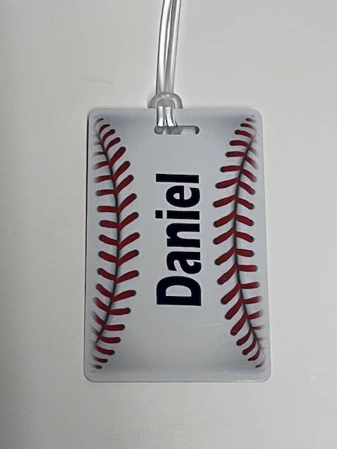 Decorate and personalize your sports bag with one of our amazing bag tags! Many youth athletes have multiple bag tags on their equipment. Perfect for many sports such as Swimming, Baseball, and Dance. The back of the tag can be individualized with athlete names, team names, organization names, sponsors, or left blank for the athlete to decorate themselves with a sharpie. CONTACT US DIRECTLY FOR BACK OF TAG OPTIONS ON YOUR ORDER. *Waterproof *Card is rigid 20 mil PVC *Loop is 6” clear silicone *3.375” x 2.125” The high quality materials and inks used make these bag tags longer lasting compared to sublimation tags. The durability and design make this perfect for athletes. Clean with water and pat with a lint free towel.