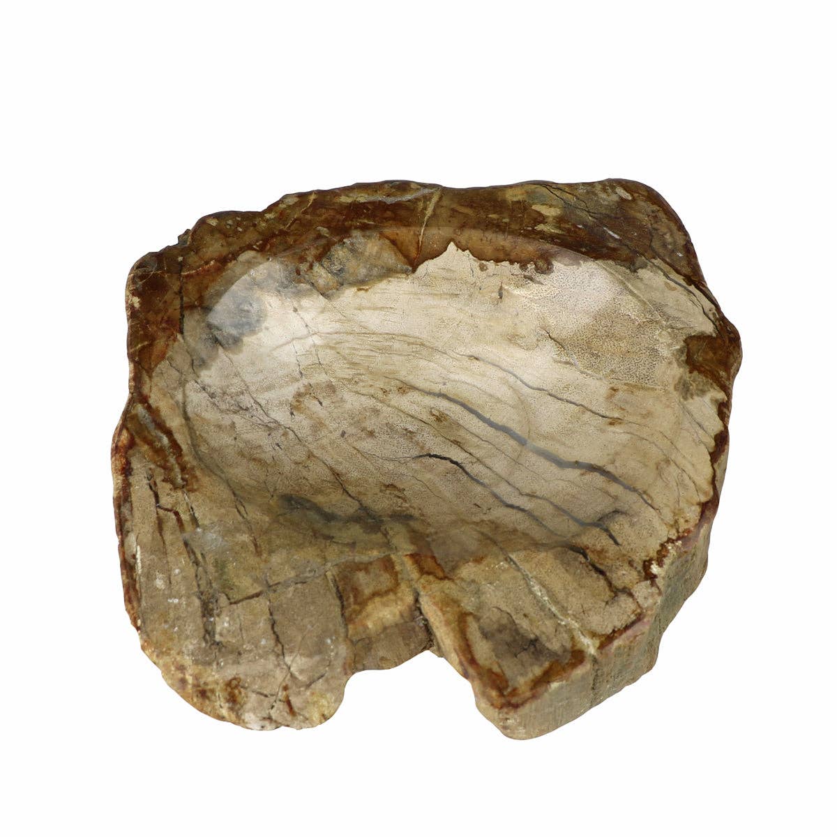 Onyx is a stone most often associated with a deep black color but has other variations. The Onyx Bowl is made from brown onyx, a rare stone banded with white colorations, giving each Onyx Bowl a rich striation of tawny brown and creamy white. No two are alike. Available in Small, Medium, and Large.