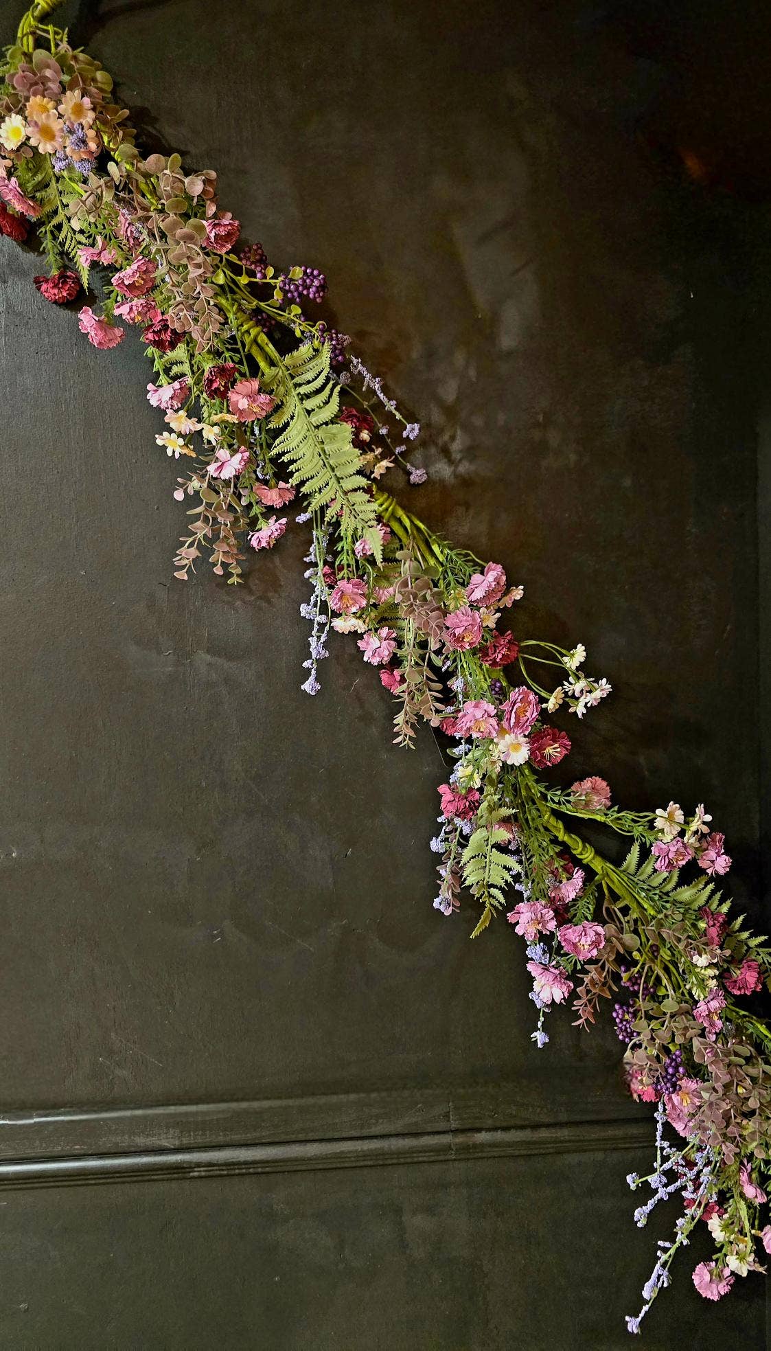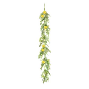 It's incredibly difficult to understand the size difference of these giant garlands without seeing them in person. To help, a standard garland might have 2 inch flowers on the half inch stem. This garland has 10 inch flowers on a one inch thick stem. Total length is 74 inches long. * 74 Inches Long * 10 Inch flower diameter * Lifelike Petals * Realistic Leaf Accents
