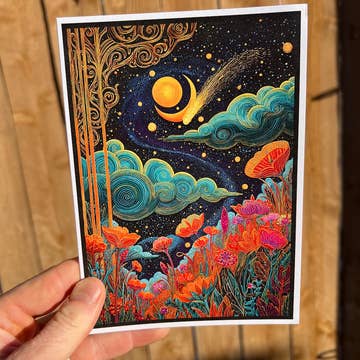 Exceptional artwork, perfectly executed. The artwork is perfect & inspirational for our creative community & shop on the Oregon coast. (I sold 6 the 1st day!) The execution was seamless with perfect weight card stock, compostable cello sleeves, & secure shipping. You can always count on an Elizabeth ;) Thank you!