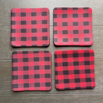 Festive tartan coasters for cozy holiday beverages.