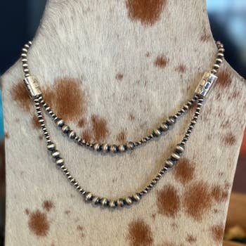 30" to 35" Extra-Long, Handmade Navajo Bead Necklace * 30" long necklace & 5" extender * 6mm, 8mm, 10mm, 12mm, 14mm navajo bead * 35 grams weight * Nickel, Lead & Chrome free