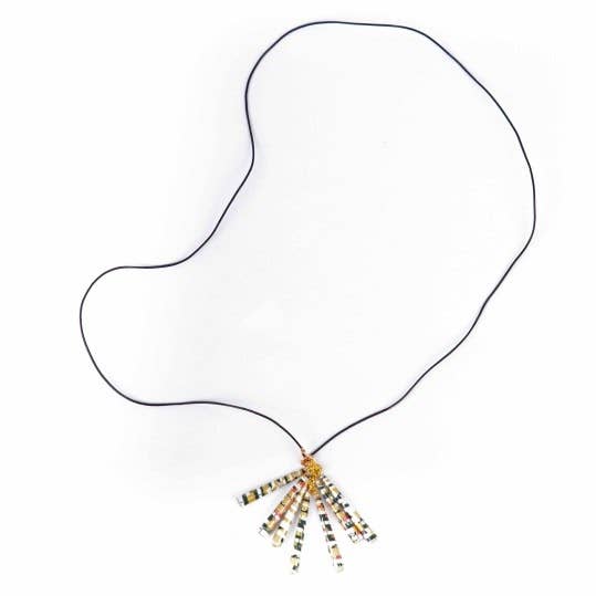 For the stylish hostess who will never walk unnoticed into a room. Nine strands of delicate beads are connected by a button clasp Length: around 50 cm.
