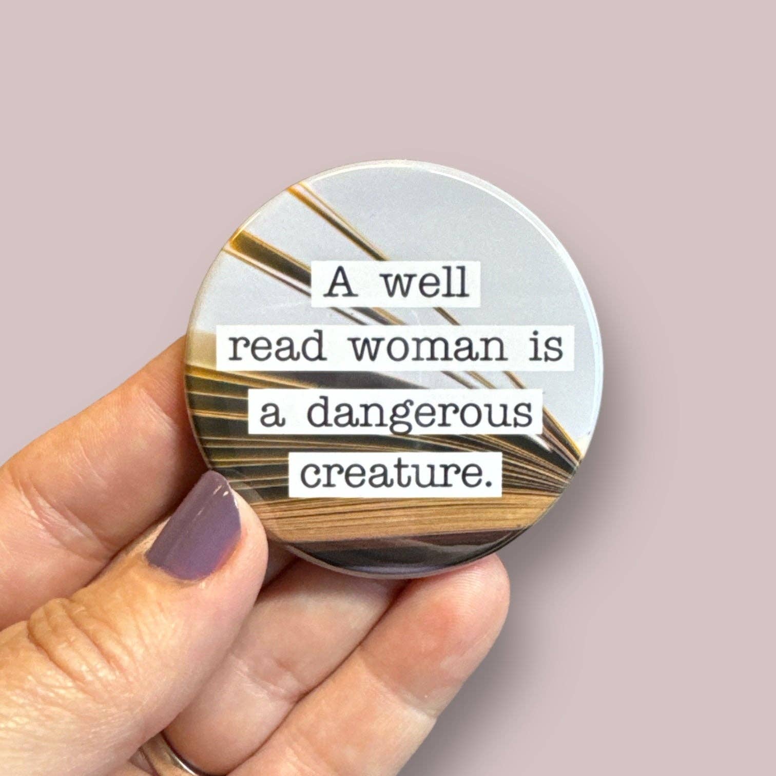 I Read Banned Books Magnet by Allison Cole. Check out our Book Magnet Bundle for more designs for readers and book lovers! 2.25" round. Made with recycled paper & steel. Super strong flat back for maximum pull strength. Hand-pressed in our Portland, OR factory. Plastic-free packaging: shipped loose in paper packaging. All Badge Bomb purchases support 1% For The Planet!