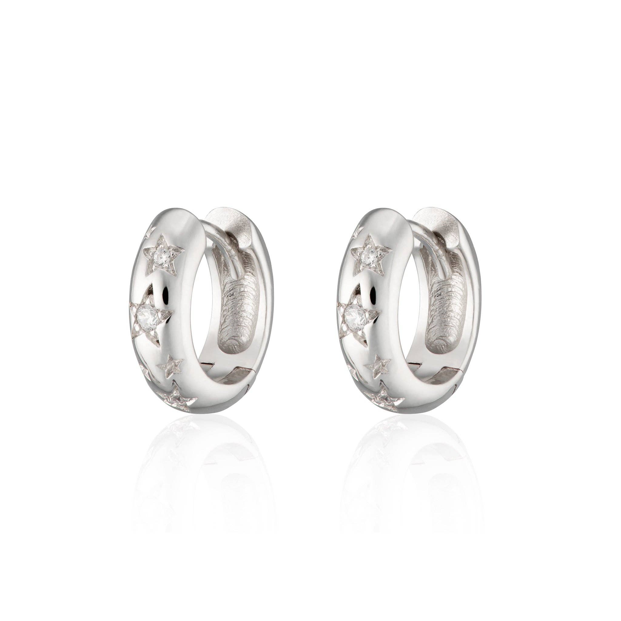 * Metal: Recycled 925 Sterling Silver * Plating: 18 Carat Gold | Silver Rhodium * Dimensions: 11mm external diameter, 7mm internal diameter, 6mm depth * Earring Type: Small Huggie with hinged click clasp * Matching Jewellery Available: Chunky Single Ear Cuff | Chunky Hoop Studs * Matching Jewellery Available: See Full Huggie Earrings Collection Simple yet bold, these super chunky huggies are the perfect staple piece ideal for everyday wear! Featuring an extra chunky profile that will add impact to any outfit, these bold mini hoop earrings are a versatile design that is easy to build upon. Crafted from sterling silver with the option of 18ct gold plated these chunky huggies have a slightly curved surface with a polished finish for a high quality shine. Why not pair with our lightning bolt ear cuff as seen on our model for a stunning high low earring combination. To wear simply open the huggie hoop earrings and slip the narrow part of the earring through your piercing then click to close. Working beautifully with upper ear or mid ear piercings, please be aware that these huggie hoops are small and dainty with a close fit to the ear, which may not fit larger lobes or if the piercing is set higher on the lobe. All Scream Pretty pieces will be beautifully presented in our signature branded packaging